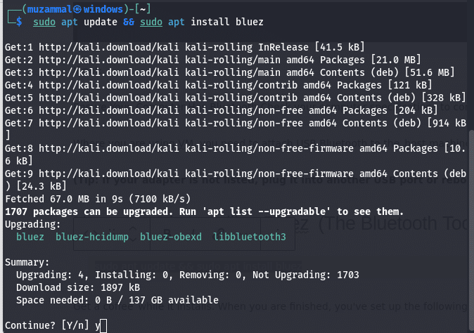 Get a coffee while it installs. When you are finished, press y for upgradeing. you’ve set up the following system for allowing Bluetooth to work <3